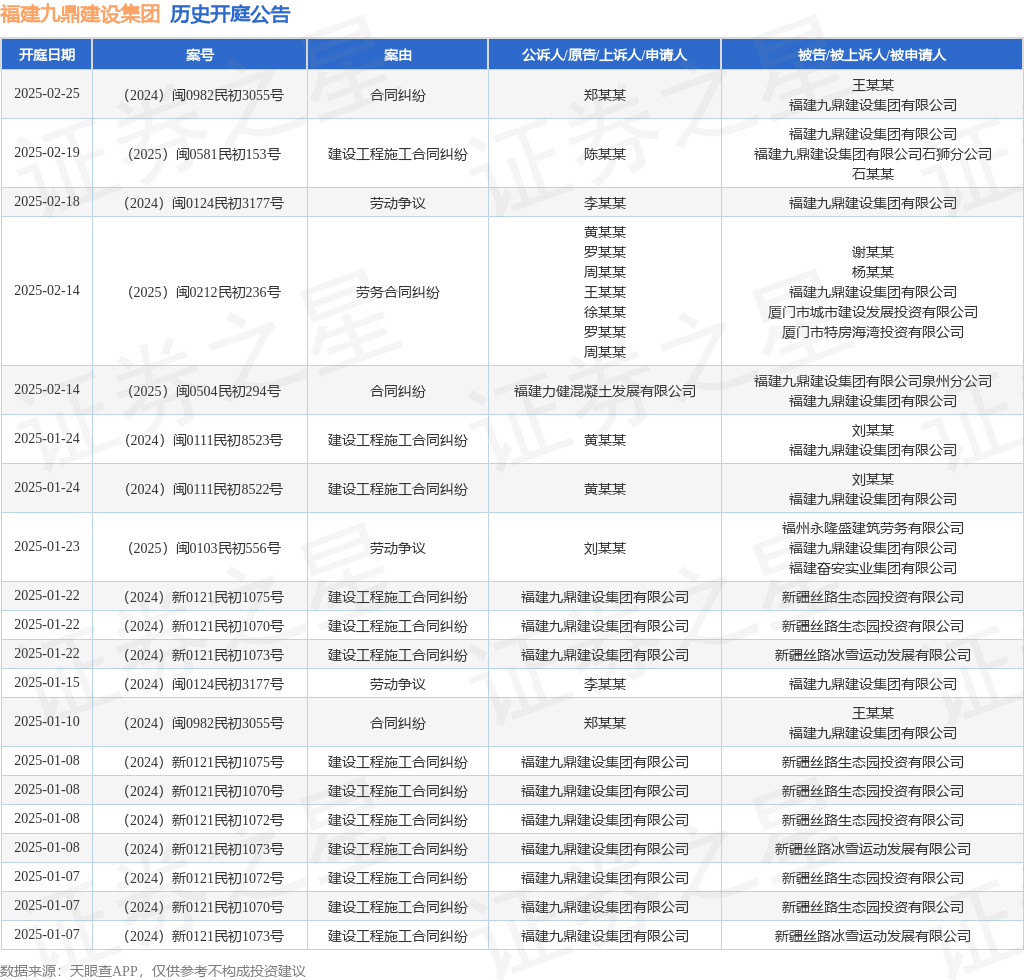 本站消息,根据天眼查APP显示,近日公布了一则福建九鼎建设集团有限公司作为被告/被上诉人的开庭公告,详细内容如下: